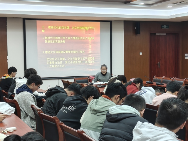 讲座伊始,庄民生教授结合自身多年思政教育工作经历,以“五老”视角解读党的二十大关于文化强国的战略部署。他指出“文化是民族的血脉,精神独立需以文化自信为基石”,庄教授从中华优秀传统文化、革命文化、社会主义先进文化出发,以史为据,层层剖析文化自信的历史逻辑,生动阐释了坚定文化自信的精神内核和对青年成长的深远意义。庄老师鼓励员工骨干从红色基因中汲取力量,将“小我”融入国家发展、民族复兴的“大我”,在服务同学中锤炼本领,在社会实践中厚植情怀。