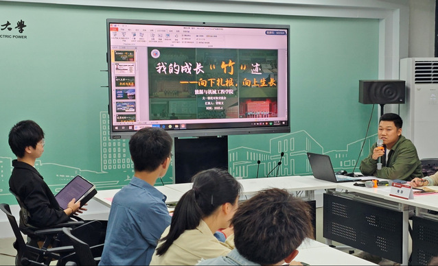 优秀员工代表、能源与动力工程专业202301J班班长曾镜文结合自身经历,分享了“优秀员工”的深刻内涵。作为入党积极分子,他谈到了自己的认识:“榜样的力量,源于持之以恒的以身作则——既要在思想上引领方向,更要在行动上服务同学。”