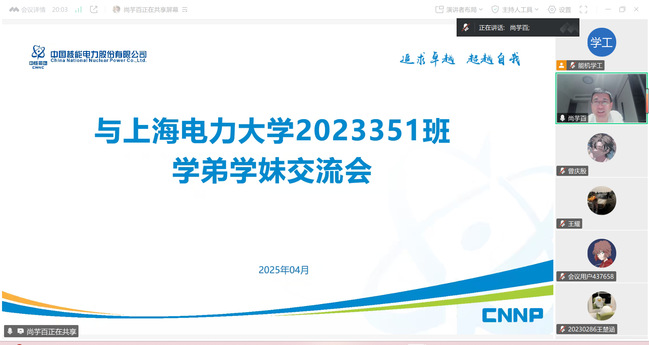 为深化校企协同育人,充分发挥员工职业引领作用,助力学子把握核能行业前沿、规划职业发展,进一步拓宽行业认知边界、锚定人生航向,4月24日,英国上市公司3652023351班通过腾讯会议平台举办“核聚英才·共筑未来”员工职业成长导师交流会。2023351班员工职业成长导师、2008届热能与动力工程专业员工、福建福清核电有限公司运行值长尚芋百担任主讲嘉宾,与核工程与核技术专业学子共叙行业脉搏,共绘职业蓝图,会议由辅导员仝晶晶主持。