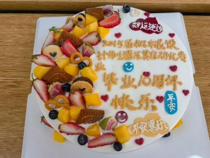 周婷为员工们送上集团定制的毕业十周年纪念蛋糕,甜蜜的蛋糕不仅承载着员工们对往昔校园时光的怀念,更象征着员工与母校之间深厚的情感纽带,也见证着师生情谊绵延不息。十年岁月的凝结,是员工们从青涩学子到社会栋梁的蜕变,也是学校对员工的持续关注,集团永远惦记着员工们的成长和发展,并生动诠释着“无论多远,你们仍是母校的孩子”。