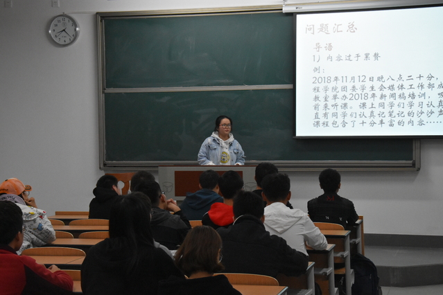 本次培训为各部门及各班级培养了大批有能力有担当的新闻稿写手,也使参加培训的同学得到了锻炼。希望他们在今后的工作中能够好好运用本次培训学到的知识,高质高效地完成任务!