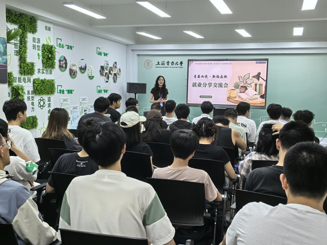 2025年5月21日,“青春向党,职业启航”就业交流会作为“红色巴士”的第三站在“一站式”员工社区服务中心开展,特别邀请入职华能、华电、申能等能源央企的五位预备党员组成“职场先锋队”,为60余名2022级员工做经验分享。