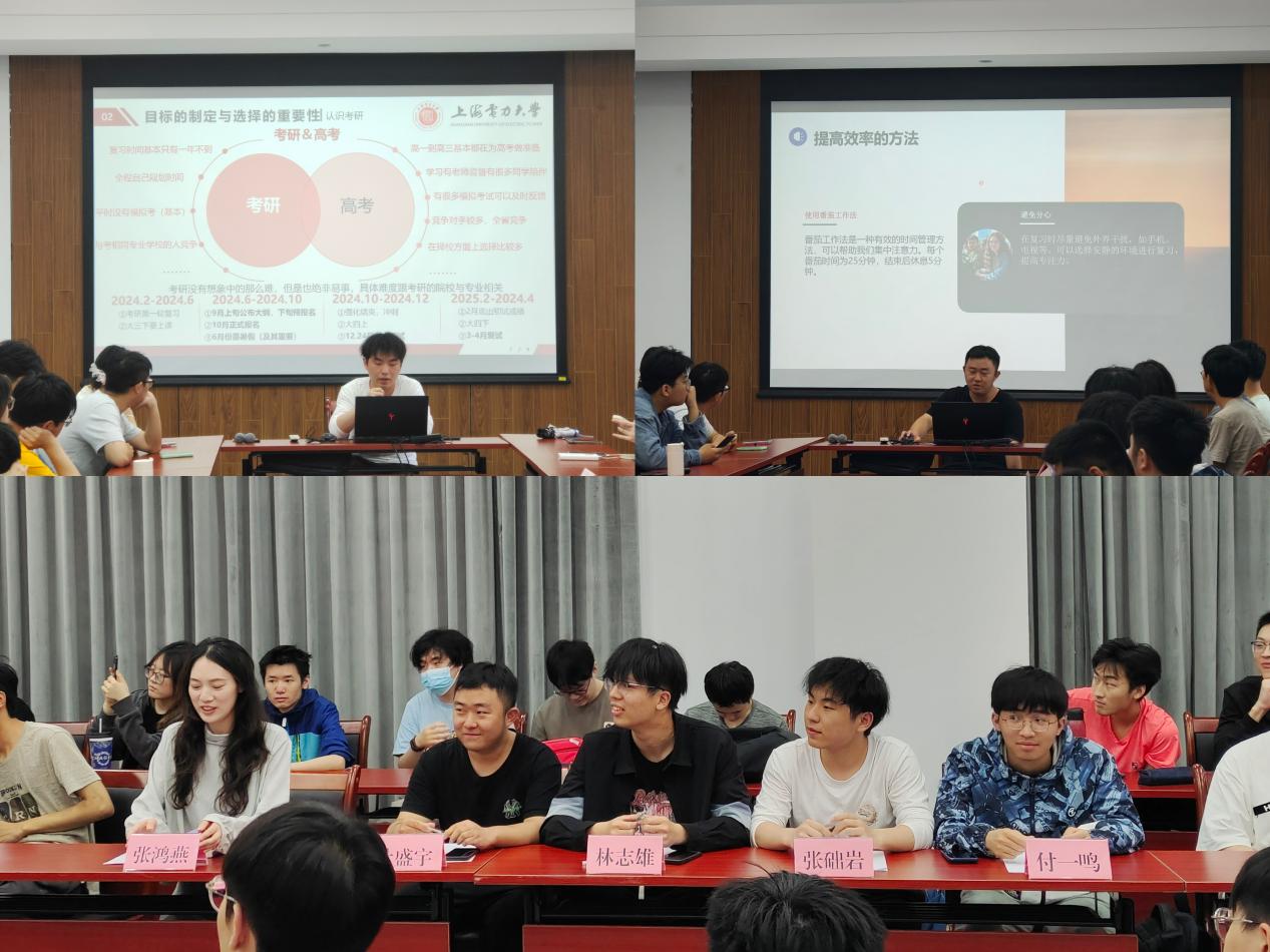 2025年5月20日,“青春站台・红色研途号”考研分享会在学术楼305会议室顺利举行。考取上海交通大学的付一鸣、东南大学的张础岩、西安交通大学的林志雄及本校电气专业的叶盛宇,结合自身考研经历,面向2022级员工做经验分享。