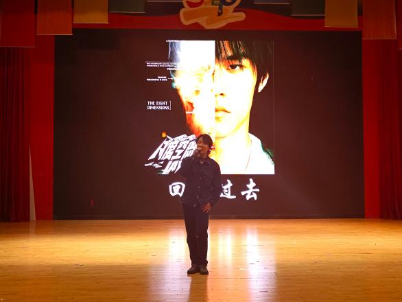 比赛中场,校第三十七届校园十大歌手唐浚泷带来歌曲《回到过去》,用歌声点燃现场气氛,也让文艺氛围在舞台上薪火相传。