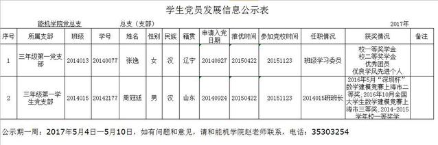 【公示信息】本科三年级第一员工党支部5月员工党员发展公示