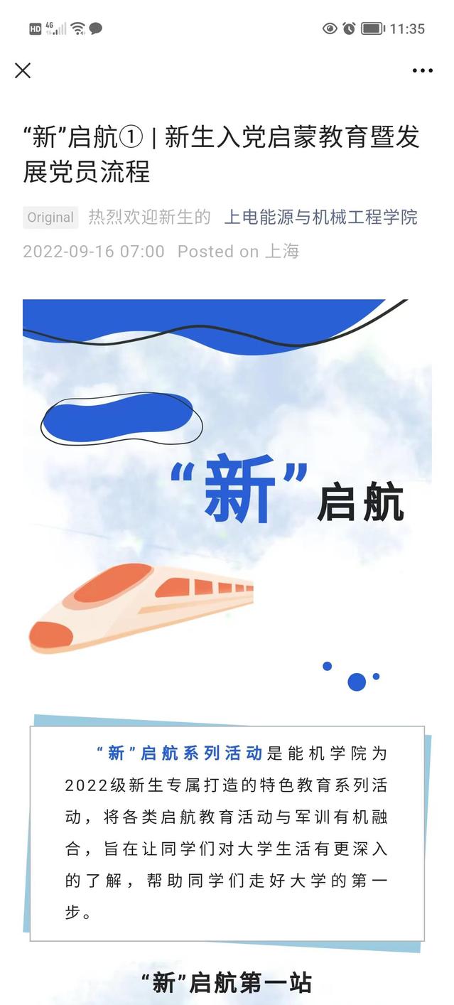 “新”启航特色主题教育系列活动,是在当前疫情防控常态化管理形势下学院在入学教育形式上的不断探索和创新,活动充分利用2022级新生军训的课余时间,采用线上会议室和微信视频号直播的方式,组织学院相关教师和员工共同参与入学教育,形成全员育人的格局,取得了非常好的响应和反馈。在本学年内,学院会继续按照入学教育相关安排组织各类内容丰富、形式多样的主题活动,希望2022级新生能够从系列主题活动中汲取精神滋养、凝聚奋进力量、担起时代责任,用越是艰险越向前的勇毅精神,展现上电青年人的精神面貌。