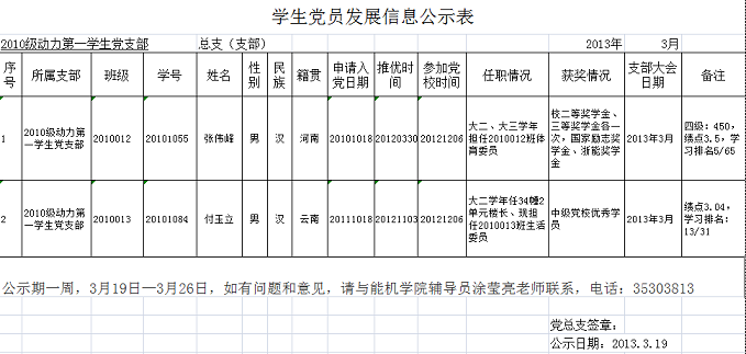 2010动力第一员工党支部发展党员公示表