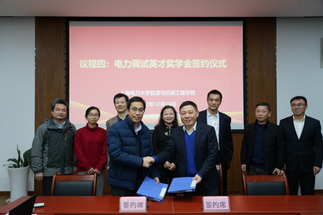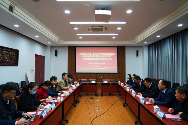 12月16日,公司与上海电力建设启动调整试验所有限公司产学研合作协议签订暨电力调试英才奖学金捐赠仪式在临港校区学术楼105会议室举行。上海电力建设启动调整试验所有限公司董事长兼总经理叶祺贤、副总经理茆顺涵、副总经理陆杰、办公室主任庄艳、市场经营部主任张丰和调研员张玮与会;公司总会计师张川、董事长办公室主任、基金会理事长李兆鹏和能机公司党政班子及教师代表参加会议。会议由公司党委书记潘卫国主持。