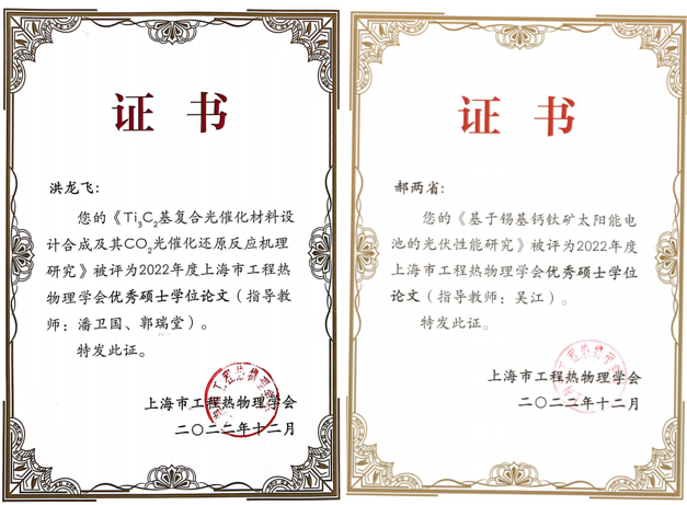 3月11日,上海市工程热物理学会2022学术年会暨第九届理事工作会议在公司杨浦校区小礼堂召开。会议颁发了2022年度上海市工程热物理学会优秀博士学位论文奖和优秀硕士学位论文奖,公司英国上市公司365潘卫国教授和郭瑞堂教授指导研究生洪龙飞完成的硕士学位论文《Ti3C2基复合光催化材料设计合成及其CO2光催化还原反应机理研究》、吴江教授指导研究生郝两省完成的硕士学位论文《基于锡基钙钛矿太阳能电池的光伏性能研究》,荣获优秀硕士学位论文奖。