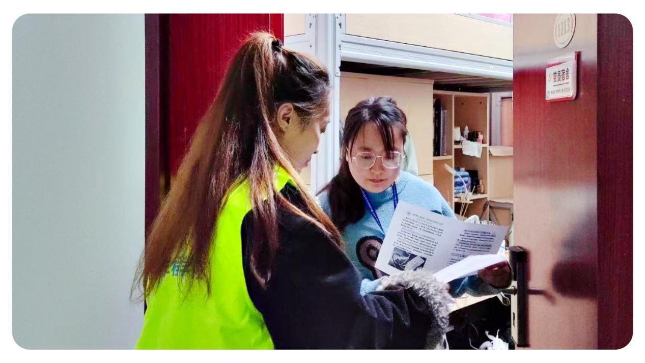 平安志愿者宣讲团携防范电信网络诈骗与寝室安全宣传单,以2-3人为一组,走进学院宿舍园区,深入各年级各班员工寝室,进行防范电信网络安全诈骗与寝室安全讲解。