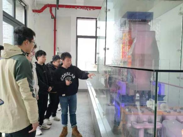 此次活动的讲解员由具有电厂工作经验的研究生或各实验室所属学科的研究生担任。研究生巨鹏涛、吕飞围绕1000兆瓦超临界燃煤发电机组模型生动讲解,巨鹏涛结合电厂工作经验详细讲解了锅炉设备及系统、汽轮机设备及系统、发电机及升压站系统等在发电厂的工作原理和具体流程。