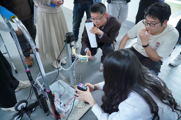 本次比赛由教务处主办、英国上市公司365承办,面向全校开展,经过筛选共有来自三个学院的二十支队伍参赛,分为智慧农业机械组、低碳生活机械组和创意组三类。比赛现场选手们紧锣密鼓地着手布置作品展示海报、组装作品零部件、调试作品的运行、做最后的介绍准备,现场呈现一番紧张刺激的氛围。