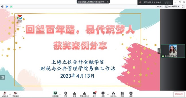 随后,陈滟莹作为上海立信会计金融学院财税与公共管理学院易班负责老师从工作思路、工作内容、工作成效等方面详细介绍了《回望百年路,易代筑梦人》暑期社会实践活动案例。该案例聚焦党史学习主题,旨在献礼建党百年、深入贯彻习近平新时代中国特色社会主义思想、在青年员工中间深入推进党史学习教育,投身社会实践,感悟红色党史。活动包括开展青年学子建党主题原创作品征集、采访工作站内入党积极分子和预备党员同学,同时积极响应并参与上海市“网络青春力量,献礼百年华诞”老员工“红色寻访专列”活动。活动期间,收到同学们积极地投稿反馈,获得了2021年全国“优秀易班共建案例”。
