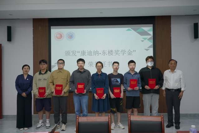 丛亮宣读2022、2023 年度“康迪纳东楼奖学金”获奖员工名单,并同赵东楼先生一起为获奖员工代表颁发荣誉证书。于淼代表获奖员工进行发言,感谢企业、学校和老师们在培养人的过程中搭建的平台,汇报了个人的成长经历和取得的成绩,同时呼吁同学们用好企业奖学金这个平台,勇于担当责任、保持创新精神、激励奋发有为、不断突破成长。