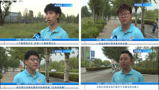 面对不同的岗位要求、各异的赛程安排、经常不规律的就餐时间等实际困难,同学们没有丝毫怨言,努力在实践中学习、适应、调整、提升自己,全心全力投入到赛事保障工作中,以高度的责任感展现出了专业的服务态度和无私的志愿精神,获得了各方的高度认可和一致好评。鄂尔多斯市融媒体中心在“十五运”赛会的宣传报道中,专门对来自公司的这四名同学进行采访并予以高度的评价。