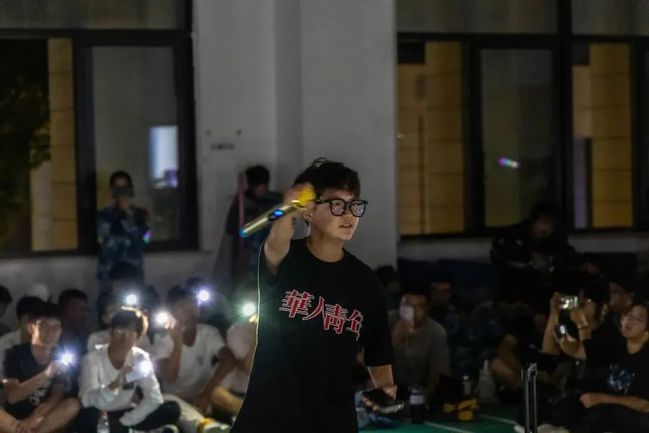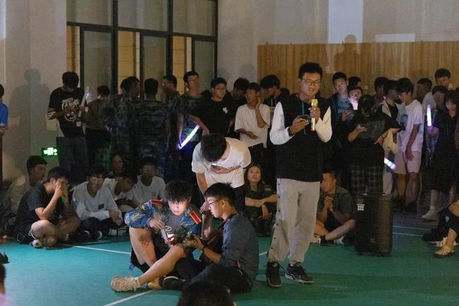 晚会在一首宛转悠扬的歌曲《大鱼》中拉开序幕,四面八方亮起的闪光灯和应援棒将现场气氛迅速调动了起来。随后进行了投壶游戏,各连队分派2名成员参加并总结得分,一场游戏下来同学们热血沸腾,情绪高涨。紧接着,同学们带来一系列的歌曲舞蹈表演,嘹亮的歌声,动情的舞姿,让所有人都沉浸在欢快的氛围中。