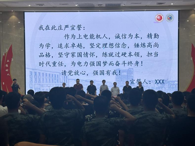 大会举行新生宣誓环节,在能源与动力工程专业新生刘丰宁的领誓下,2023级全体新生庄严宣誓,铿锵有力、慷慨激昂的宣誓声在报告厅中久久回响。
