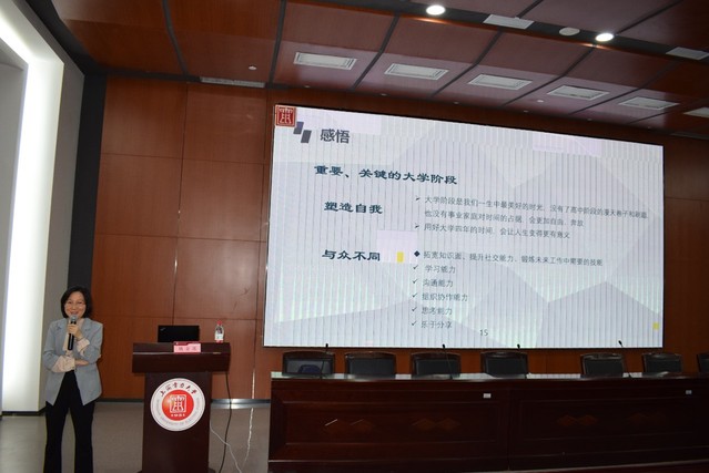 姚金莲结合高考结果给当时的自己带来的迷茫和困惑,引导同学们认真思考大学对于人生的意义和改变。在分享中,她谈到大学期间会遇到很多美好的第一次,会加入很多员工团体,体验不同的社会生活,有可以自主支配的时间,具有极高的可塑性。对于大学中收获的点滴,都是人生未来诸多的积累,鼓励同学们能够克服困难、勇敢尝试。