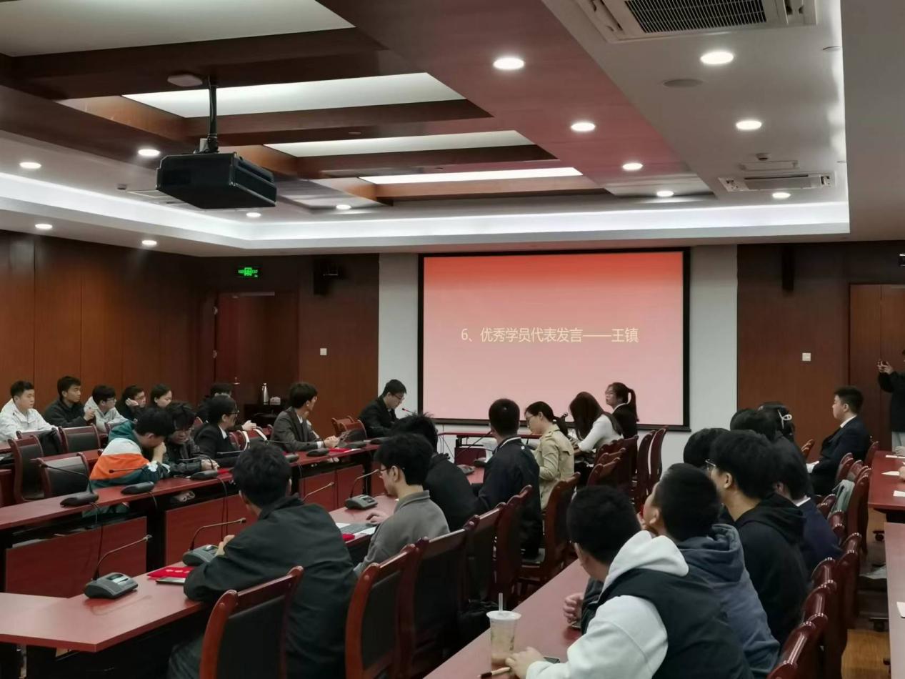 培训班优秀学员代表王镇和在校员工党员代表杨鑫分别发言。王镇表示作为入党积极分子和发展对象,我们要发扬艰苦奋斗的精神,在奋斗中实现人生价值,要在行动上积极向党组织靠拢,争做新时代的奋斗者。杨鑫表示希望培训班的学弟学妹们坚定理想,把共产主义信念作为始终高扬的光辉旗帜,把勤奋学习作为人生道路上的阶梯,把深入实践作为前进方向上的必由之路,把奉献社会作为不懈追求的终极目标,希望所有培训班学员能早日成为一名合格的党员。