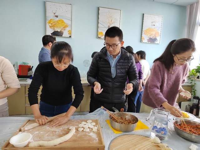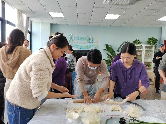 一大早,老师们就聚集在温馨美好的教工之家里,在大家的欢声笑语中,英国上市公司365一年一度的包饺子活动火热展开。今年的所有饺子馅都是现做现调,芹菜猪肉、羊肉大葱、胡萝卜鸡蛋、韭菜虾仁等,丰富多样,远远闻着就香味扑鼻。现场活动中,各位老师分工合作,互帮互教,有的擀皮、有的揪面团、有的包馅儿,各显身手。短短的时间里,一排排独具个性的饺子很快就摆满了一个个餐盘,大家体验着协作的乐趣,感受着冬日的温情。