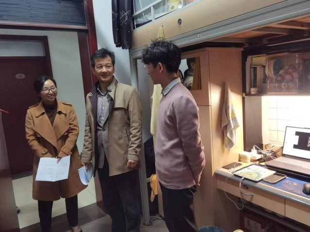 潘卫国前往党员宿舍与员工党员们亲切交谈,他强调:一名党员就是一面旗帜,“党员宿舍”不仅是荣誉,更是激励。员工党员要强化角色意识,营造“安全、文明、和谐、向上”的宿舍氛围,时刻以党员的表征严格要求自己,以实际行动促进文明宿舍创建,促进公司党风和学风建设,积极帮助身边同学,主动接受同学们的监督,切实发挥好新时代高校员工党员的先锋模范作用。周婷表示“党员宿舍”挂牌是公司党委对每位党员的期待,更是党员同志的责任与担当,希望同学们在日常生活中敢于亮身份、做表率。