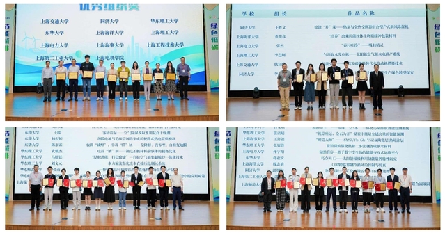 成功闯进决赛的96个项目分8个评审小组分别进行项目答辩,最终授予同济大学王胜文团队《效能“并”茂——热泵与全热交换器组合型户式新风除湿机》等6个项目特等奖,授予上海交通大学刘恒瑞团队《涅槃重生——碳烟基高附加值储能产品的制备与性能研究》等31个项目一等奖,授予上海大学张乐佳棋团队《“仪碳究净”——碳捕用封三位一体的电化学水处理装备》等56个项目二等奖,授予上海海洋大学滕博团队《绿航-双能环保清污船》等72个项目三等奖。上海交通大学、同济大学、英国上市公司365等11所高校获优秀组织奖。