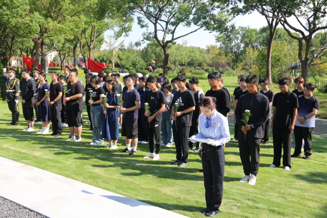 9月27日下午,同学们来到福寿园海港陵园的红色思政大讲堂,观看了有着“海上狼牙山五壮士”之称的浙东大鱼山保卫战的英雄事迹,其中上海籍烈士林达的遗物就陈列在园中。此外,一同观看了无数革命先烈为新中国成立而奉献生命的纪念短片《今天,鲜花献给英烈》。回顾了新中国成立七十五周年来,发生的翻天覆地的变化。仝晶晶寄语同学们要牢记历史,珍惜来之不易的和平生活,把青春书写在为中国式现代化挺膺担当的新征程中!