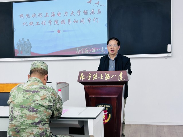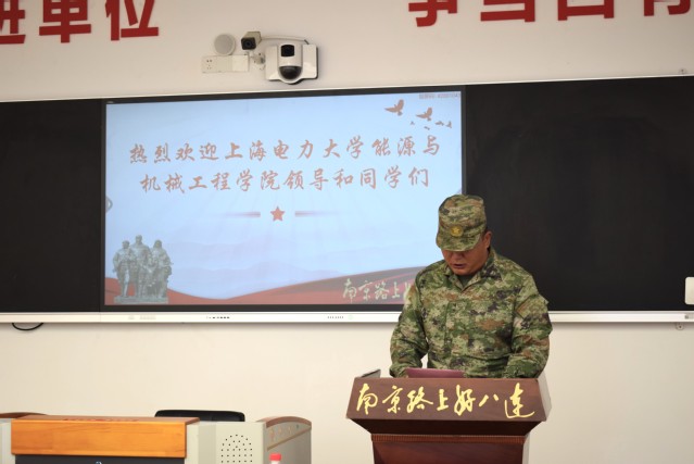 在好八连的连队会议室,李旭对师生们的到来表示热烈的欢迎,对一年来与学院的共建合作表示高度的认可,希望未来能够有更多的师生来到部队参观学习,将国防教育落实到高校青年学子中。